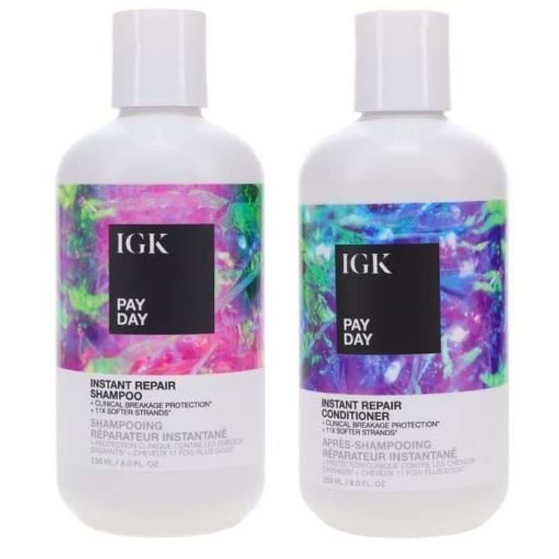 IGK Pay Day Instant Repair Shampoo and Conditioner Set | Bond-Building + Damage Repair | Vegan + Cruelty Free |