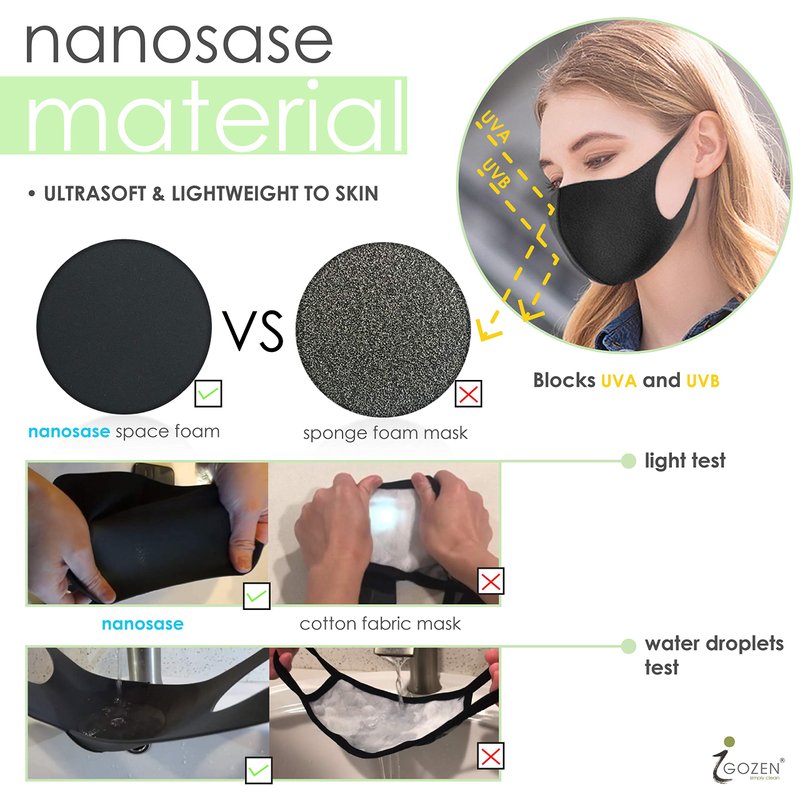 - Q: What is Nanosase by iGozen face cover? A: Nanosase space cotton memory foam is not the cloth material and have a different PU cell structure. Our memory foam is more dense and cooler, more responsive and more expensive than your typical PU which can be made very cheaply.
