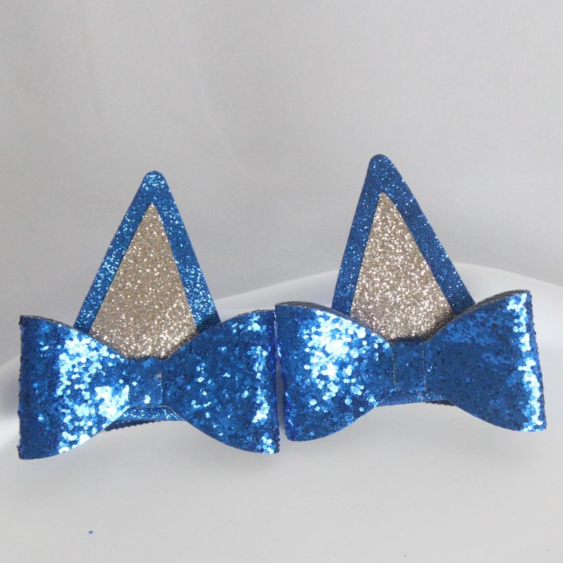 IKUHRMO Blue Ears Hair Clips, 1 Pair Glitter Hair Barrettes for Toddler Girls Birthday Decorations Halloween Costume Cosplay Accessories Party Supplies (Blue)