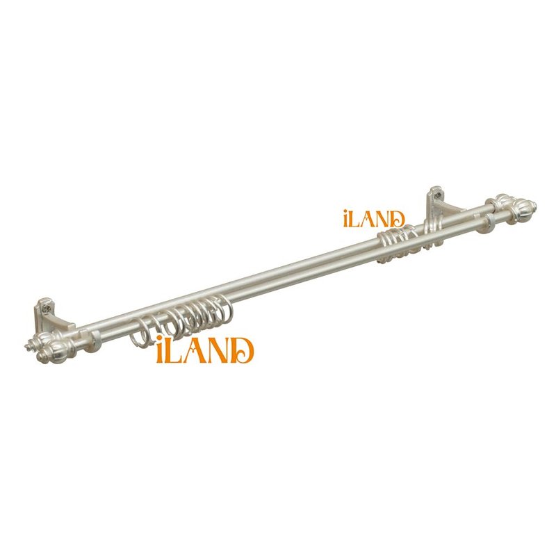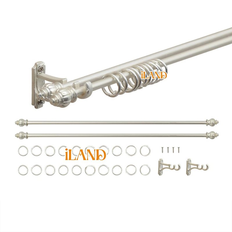4 curtain rods, 4 double-curtain rod brackets, 40 metal rings, 8 screws
