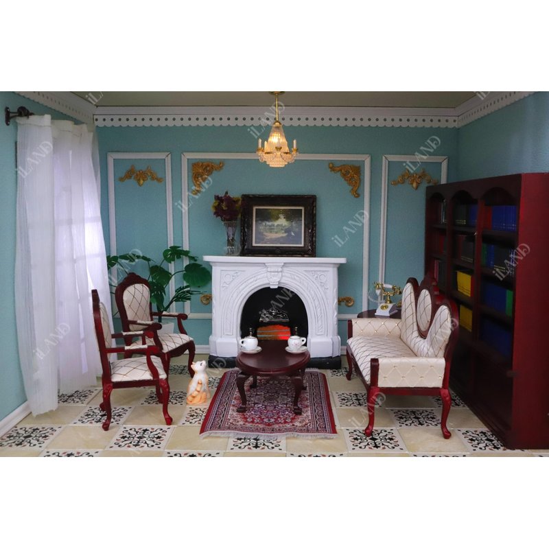 iLAND Dollhouse Furniture and Accessories of Dollhouse Fireplace on 1/12 Scale w/Fire Light & Firewood Rack & Fireplace Tool Kit (Neoclassical 4pcs)