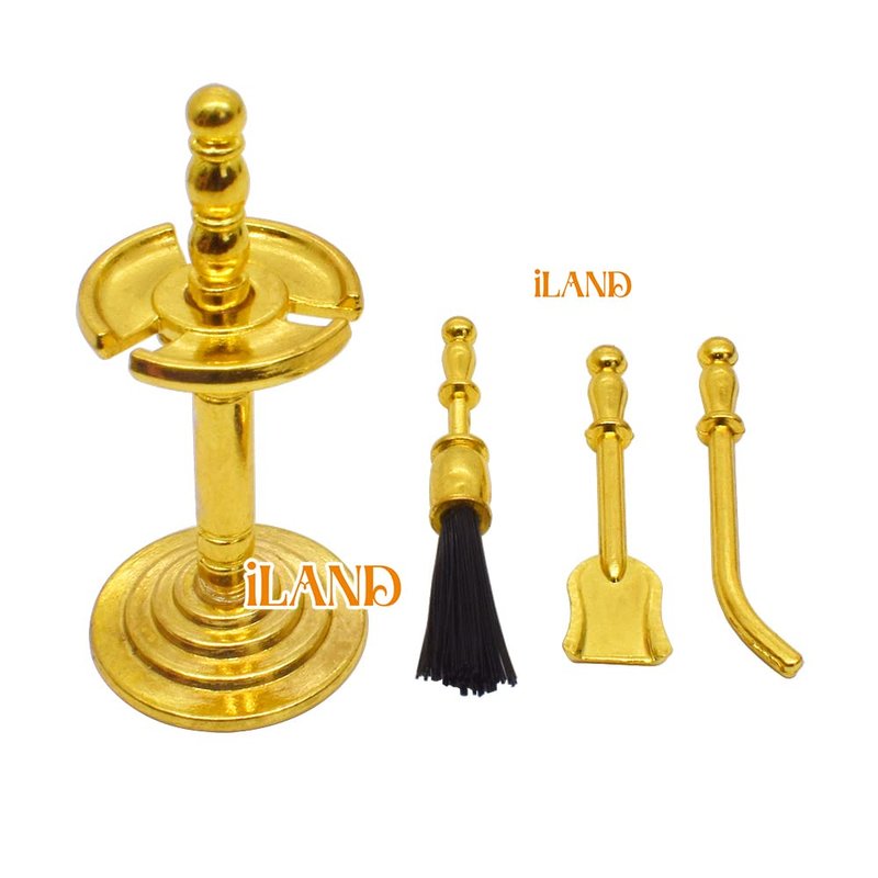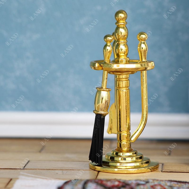 - NICE DOLLHOUSE FURNITURE AND ACCESSORIES SET: It’s a complete dollhouse fireplace set including 1 resin miniature fireplace, 1 metal firewood rack w/ 5 true logs, and 1 metal tong and a beautiful golden holder with 3 cleaning tools of shovel, brush, chimney poker.