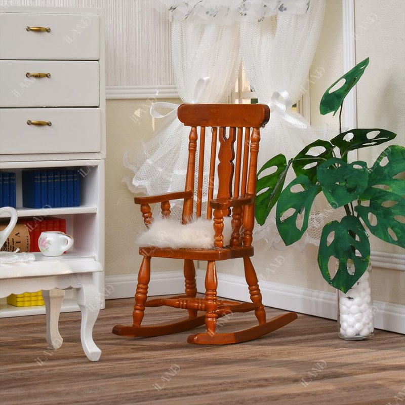 - - VINTAGE DOLLHOUSE FURNITURE: You will receive a doll house rocking chair with a velvet cushion. With excellent craftsmanship and exact 1:12 scale, this doll house furniture will bring you to a realistic miniature world. With it, you could make a leisure dollhouse room in the colonial style.