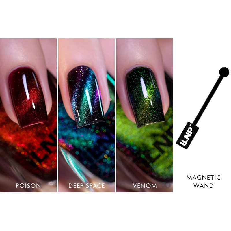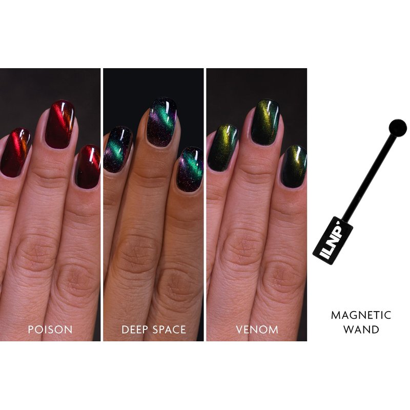 The 4-piece Magnetics Bundle has everything you need to create mesmerizing works of art on your nails effortlessly! Featuring 3 of our most popular and eye-catching magnetic polishes and our magnetic wand, the Magnetics Bundle is perfect for every nail enthusiast. This listing is for the 4-piece ILNP Magnetics Bundle It will contain 1 of each of the following: Poison Deep Space Venom Magnetic Wand For more details on each product, please visit their individual listings