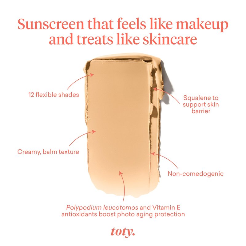 - Why you’ll love it: Sofia’s favorite toty face sunscreen! Suitable for all skin types, including sensitive! Blurs imperfections just like a filter for your face! Don’t be fooled by the compact—this is not powder, but a creamy, yummy foundation balm. Light, non-cakey coverage. Non-comedogenic—no breakouts! Eye safe. Lightly scented so no sunscreen smell. Talc-free. Vegan, cruelty-free, dermatologist tested and free from parabens, every toty product is third-party tested.