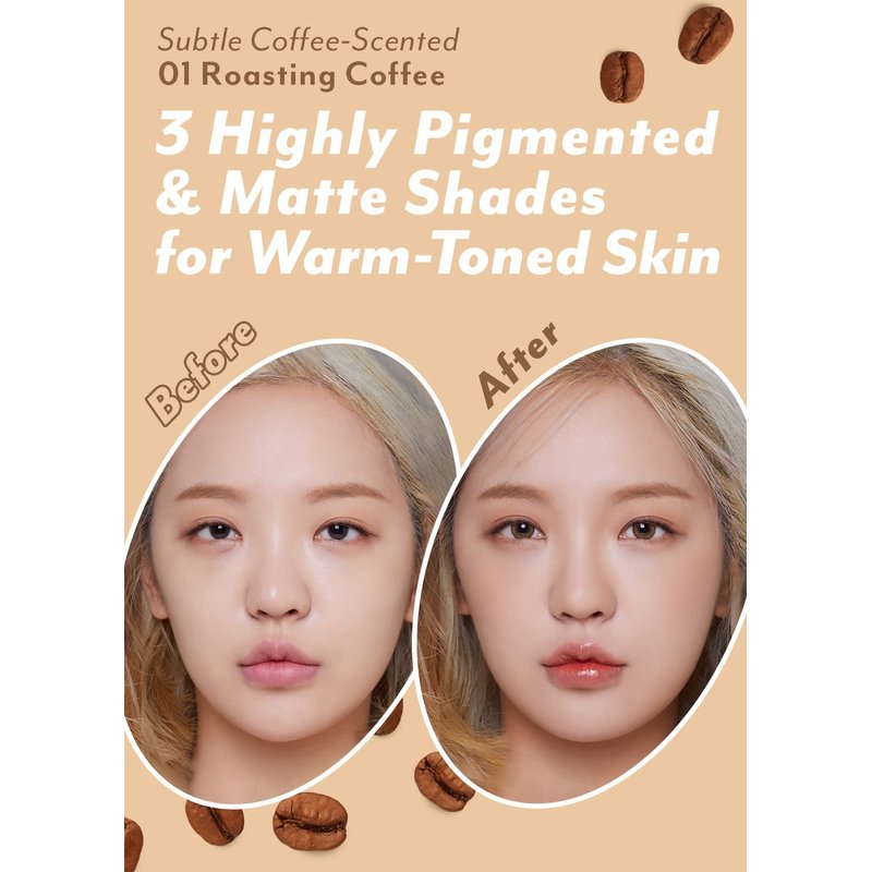 - ROASTING COFEE: With a subtle coffee scent, the Roasting Coffee palette offers shades recommended for warm-toned skin.