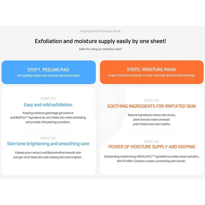 - TWO-STEP ROUTINE: This kit includes both exfoliating face pads and a hydrating moisture mask pads, providing a complete skincare routine. Use the pads to remove dead skin cells and impurities, then follow with the mask to infuse intense hydration for a radiant, glass-skin finish.