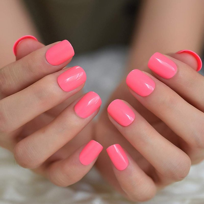 - Beauty short square glossy pink solid press on nails,high-quality salon style, nails are made by Acrylonitrile Butadiene Styrene(ABS), it is environmentally protection, non-toxic. Suitable Occasions: wedding, home DIY false nails art and other festival. Wonderful as gift for girlfriend,family and friends.