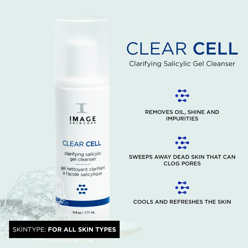 IMAGE Skincare, CLEAR CELL Salicylic Gel Cleanser, Gentle Foaming Face Wash Removes Excess Oil and Shine for Oily Prone Skin, 6 fl oz