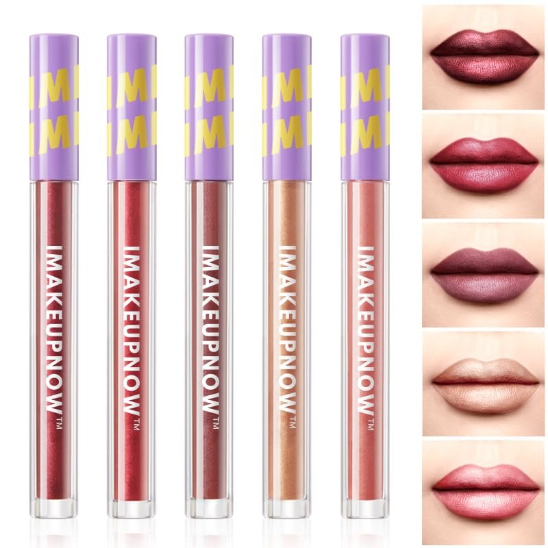 imakeupnow Metallic Liquid Lip Gloss Set 5 Pcs, Long Lasting Glitter Lipstick Make Up For Women Transferproof High Pigment Lipstick Gloss