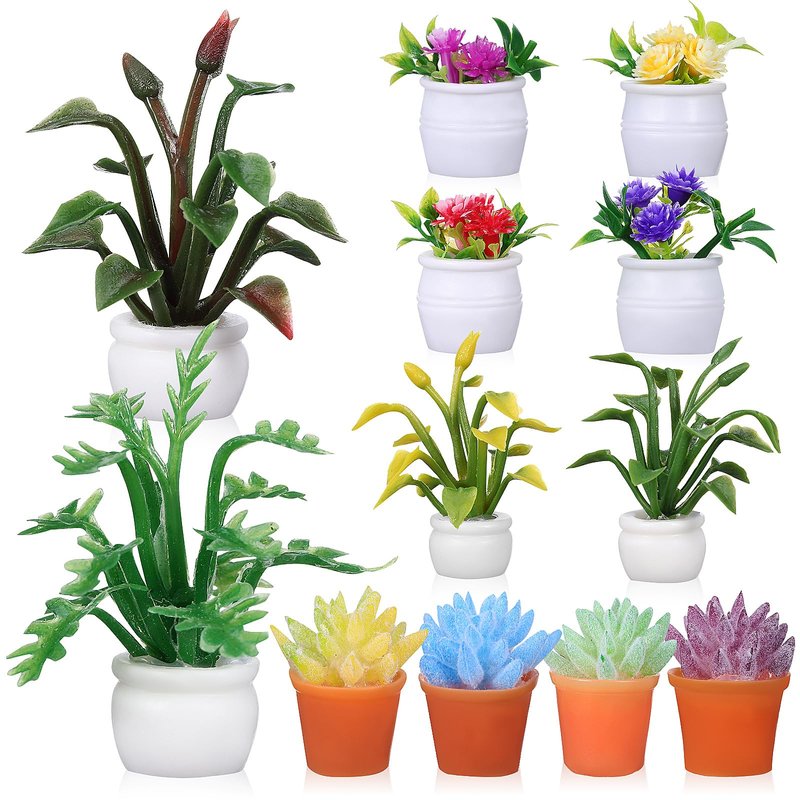 - ๐๐ฟPerfect : Our Miniature Potted Plant makes a wonderful for anyone who loves miniature dollhouse furniture or natural decor. Its perfect for a housewarming present or to add charm to your kids dollhouse decoration! Enjoy the botanical authenticity with our mini potted plants, featuring meticulously crafted leaves, flowers, and textures.
