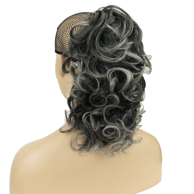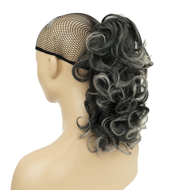 IMISSU Messy Curly Hair Short Claw Ponytail Hair Extensions Pony Tail Clip in Hairpieces (Black Ombre Gray)