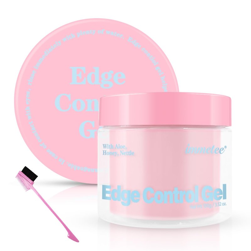 immetee Edge Control Gel with Brush - Hair Styling and Flyaway Tamer for Afro Hair (100g, 3.52 oz, Pink-Watermelon)