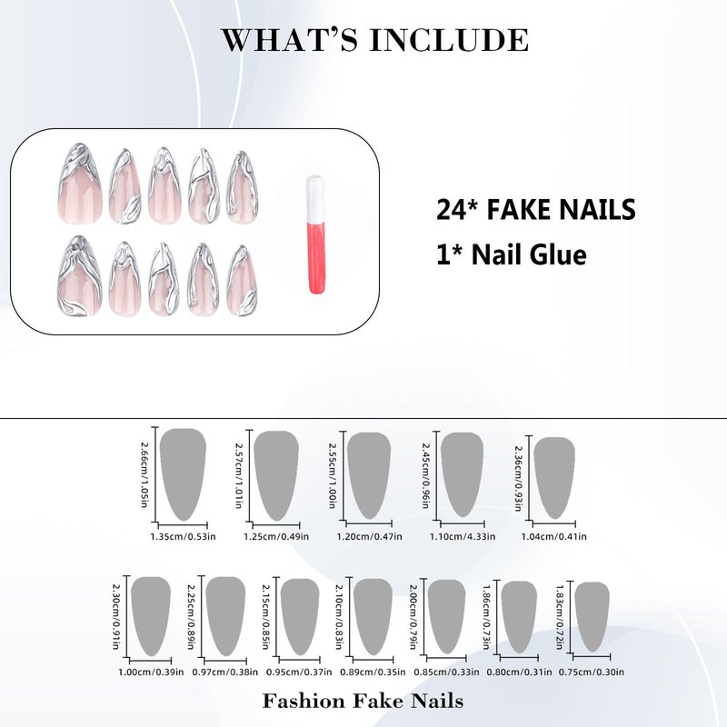 - [Quality Material] These silver french tips press on nails are made of quality acrylic material, non-toxic and gentle to your nails and skin, not easy to be scratched, will give you a nice manicure experience.