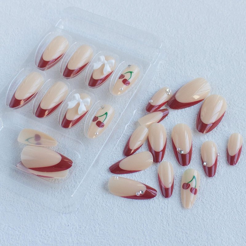 - [Quality Material] These red cherry press on nails are made of quality acrylic material, non-toxic and gentle to your nails and skin, not easy to be scratched, will give you a nice manicure experience.