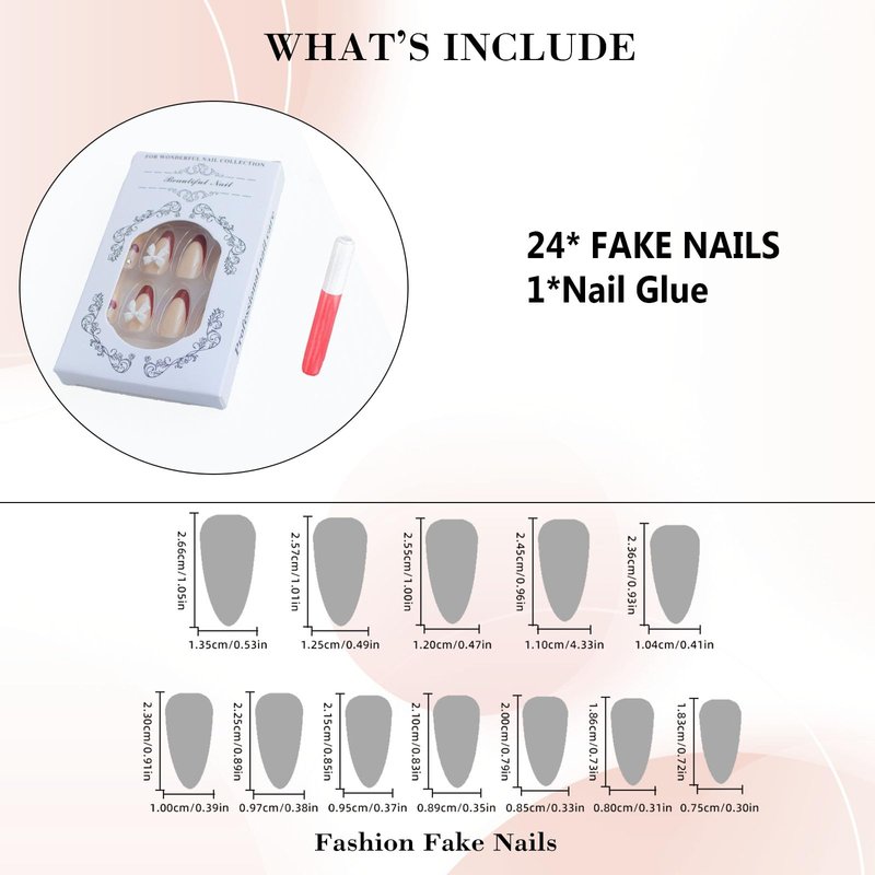 - [Package Content] You will get 24 pieces of IMRAIN medium almond press on nails, a small clear box with glue, and you can trim it to any length you want~