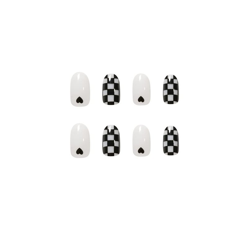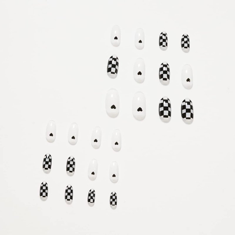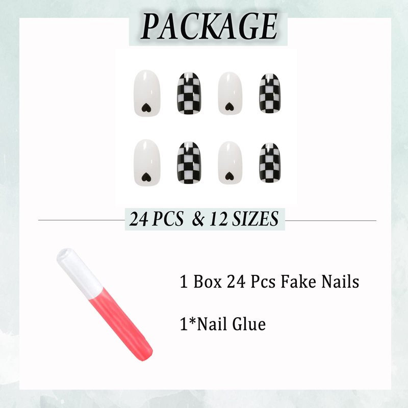 - Before using the black checkerboard false nails, wipe your nails clean, then find the right nail size for your fingers, press and hold for 5 seconds, and you will have your own beautiful nails.