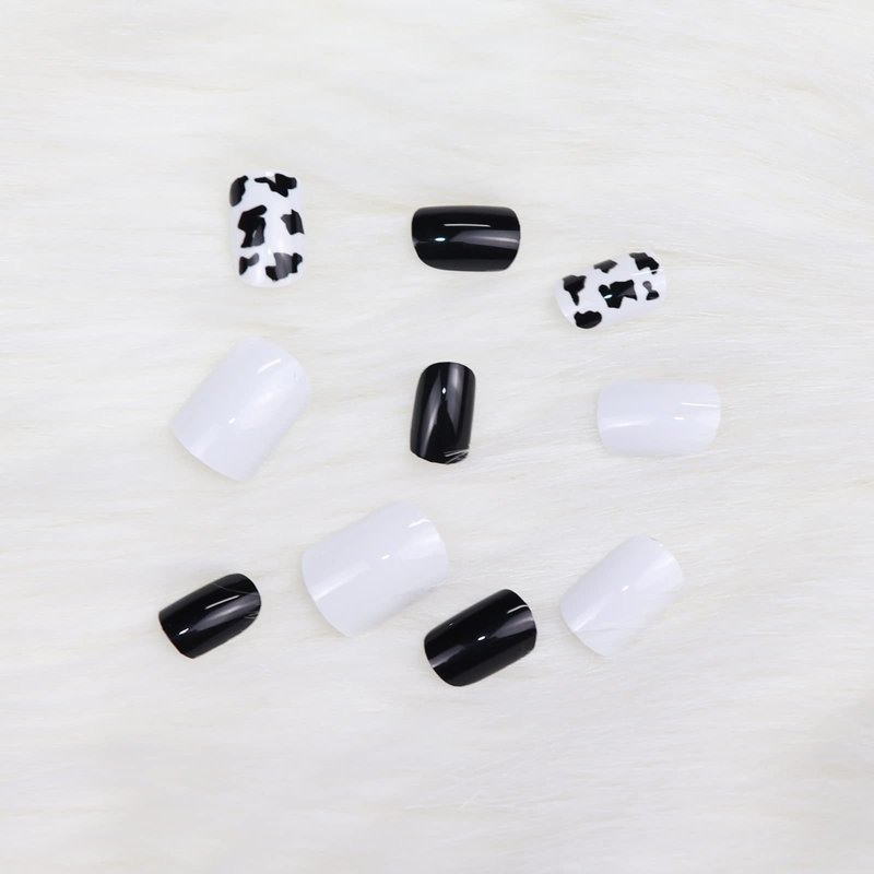 - [💕12 Size & 24Pcs] - Cow print press on nails white fake nails have 12 different sizes in one box.