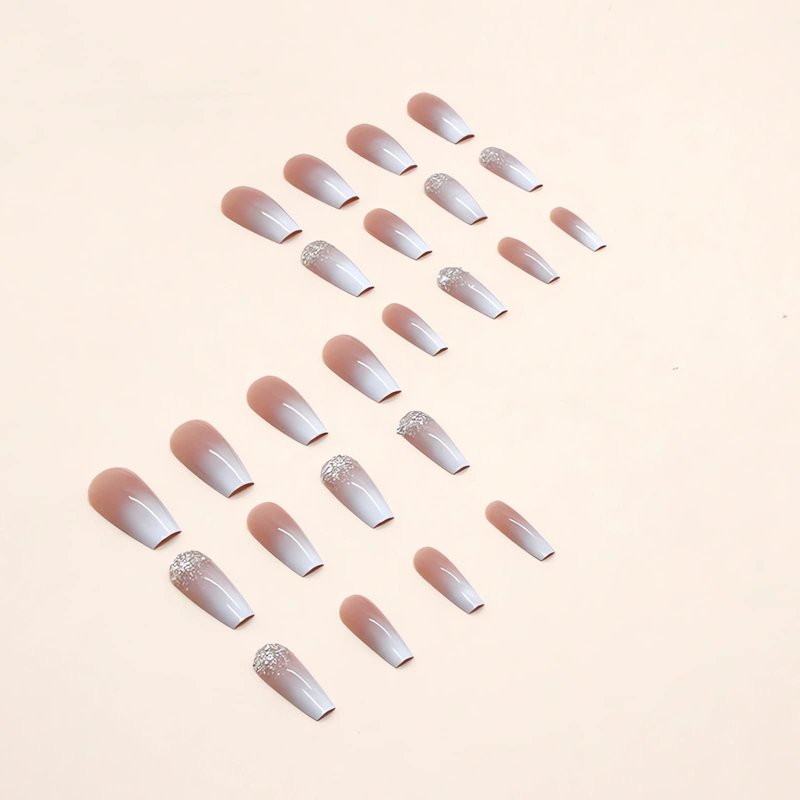 - [Quality Material] These gradient glitter press on nails are made of quality acrylic material, non-toxic and gentle to your nails and skin, durable and not easy to be scratched, will give you a nice manicure experience.