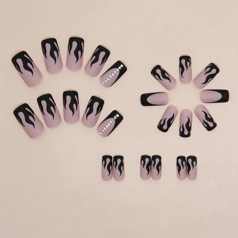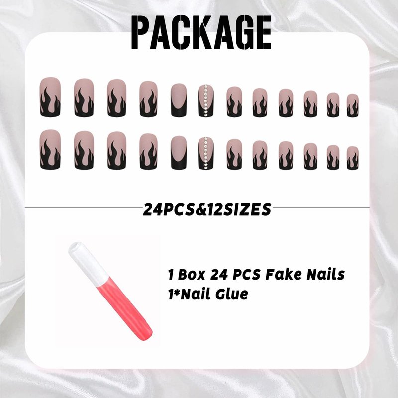 - [Quality Material] These matte black flame press on nails are made of quality acrylic material, non-toxic and gentle to your nails and skin, durable and not easy to be scratched, will give you a nice manicure experience.