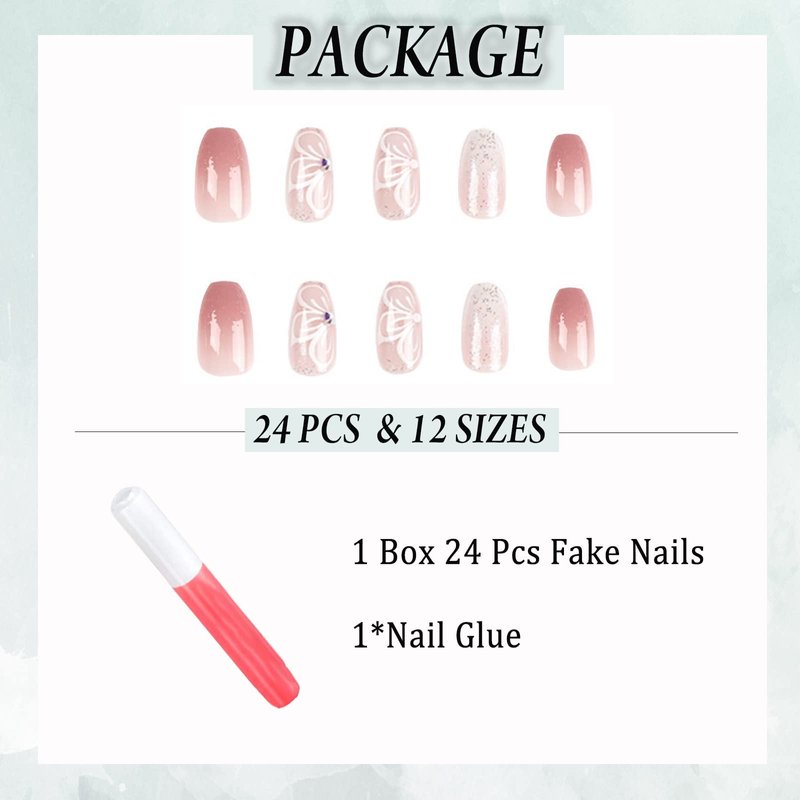 - [AFTER SALE]- Diamond flower false nails design nails can be reused when used properly~ If you have any questions about the product, please feel free to contact me.