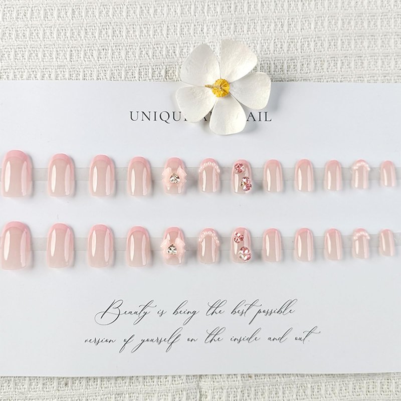 - [Quality Material] These cute pink bow tie press on nails are made of quality acrylic material, non-toxic and gentle to your nails and skin, durable and not easy to be scratched, will give you a nice manicure experience.