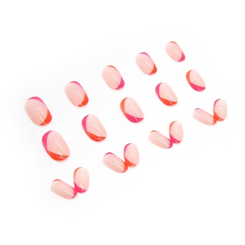 IMSOHOT Oval Press on Nails Short French Fake Nails Glue on Nails Glossy Nude Ombre False Nails with Designs Pink Round Full Cover Acrylic Nails for Women 24Pcs
