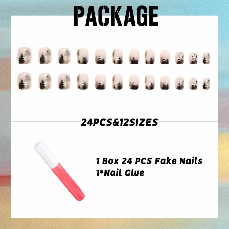 - [Package Content] You will get 24 pieces of IMSOHOT square short press on nails, a small clear box with glue, and you can trim it to any length you want~