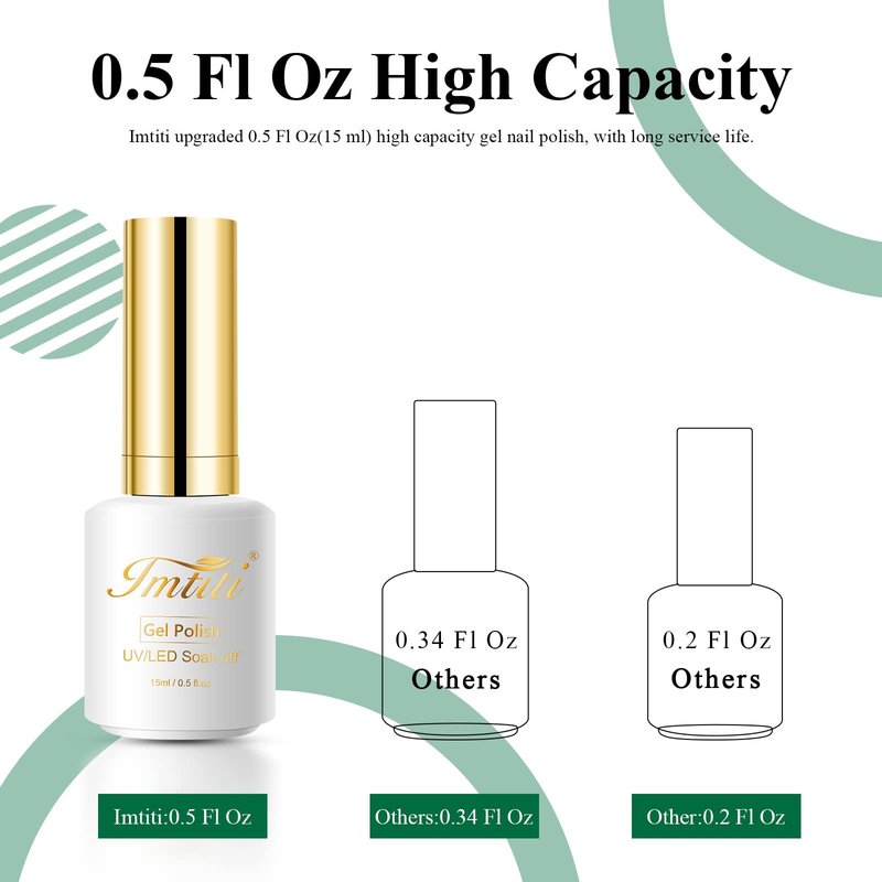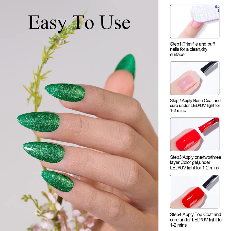 - 💎Gel nail polish: 1 Pcs 15ml (0.5oz) Big Capacity Glitter Green gained popularity in recent years due to its durability and long-lasting wear. One of the main features of nail polish gel is its ability to resist chipping and peeling for up to two weeks, making it a popular choice for people who want a low-maintenance nail look.