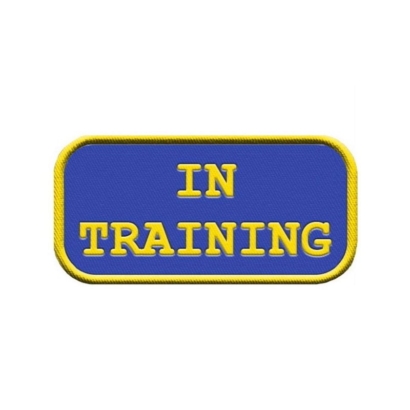 - HIGHLY VISIBILE: These service dog patches features bold text that is easy to read up close or far away. The Service Dog vest patch features the words "IN TRAINING" on it in bold letters with a Navy background. It features finished edges which are bound in yellow thread.