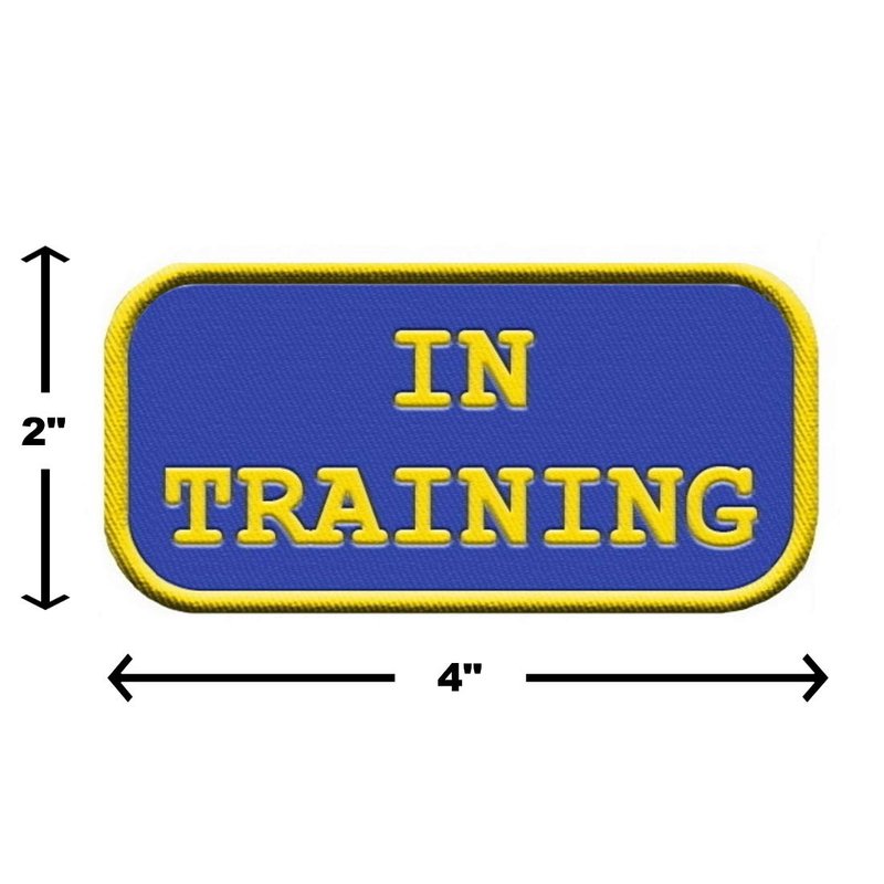 - DIMENSIONS: This In training vest patch measures 4" wide by 2" high.