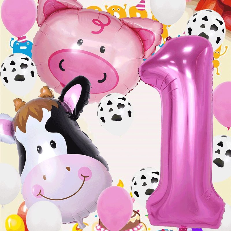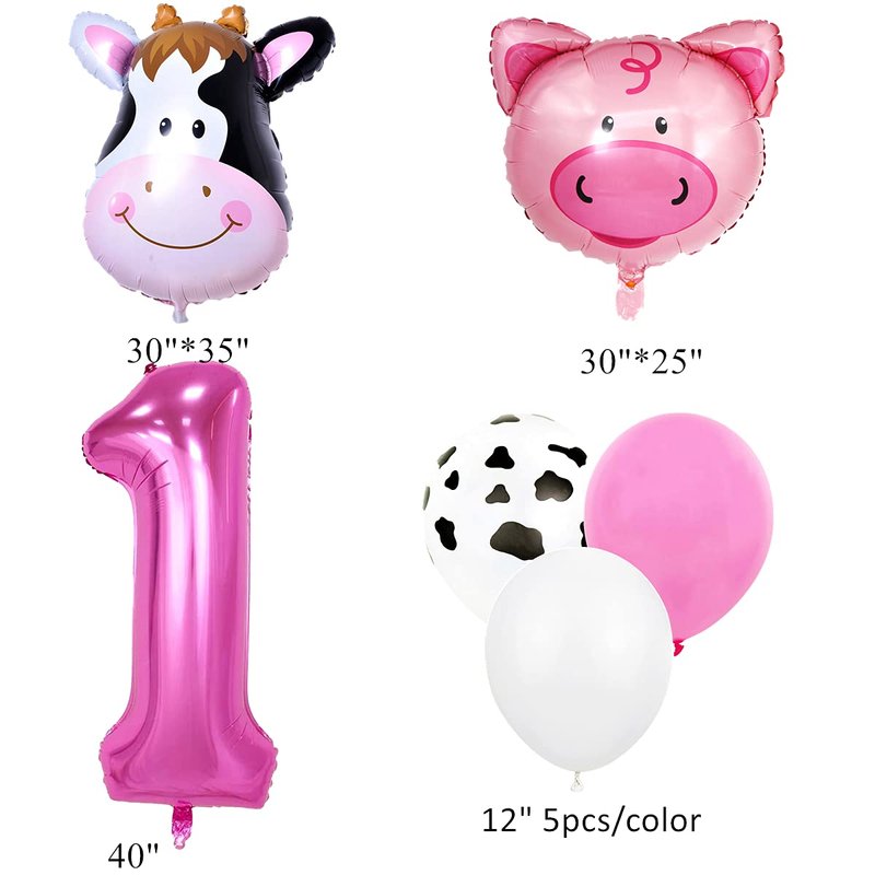 InBy 18pcs Farm Animal Balloons for 1st Birthday Party Decorations Pig Cow Head First Farm Animal Theme Balloon Garland Arch 40" Number 1 Foil Balloon 12" Latex Balloon Baby Girl Shower Party Supplies