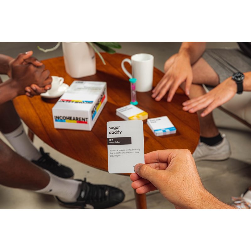 - HOW TO PLAY: A rotating judge flips the timer and holds a card up so that only they can see the answer, but everyone else sees the Incohearent phrase. Everyone else reads the front of the card aloud. Whoever decodes the phrase first wins the card. When the card has been decoded or the translators have elected to pass, the judge pulls the next card. Once the timer runs out or 3 cards have been decoded, the round is over, and the next person becomes the judge. First player to decode 13 cards wins!