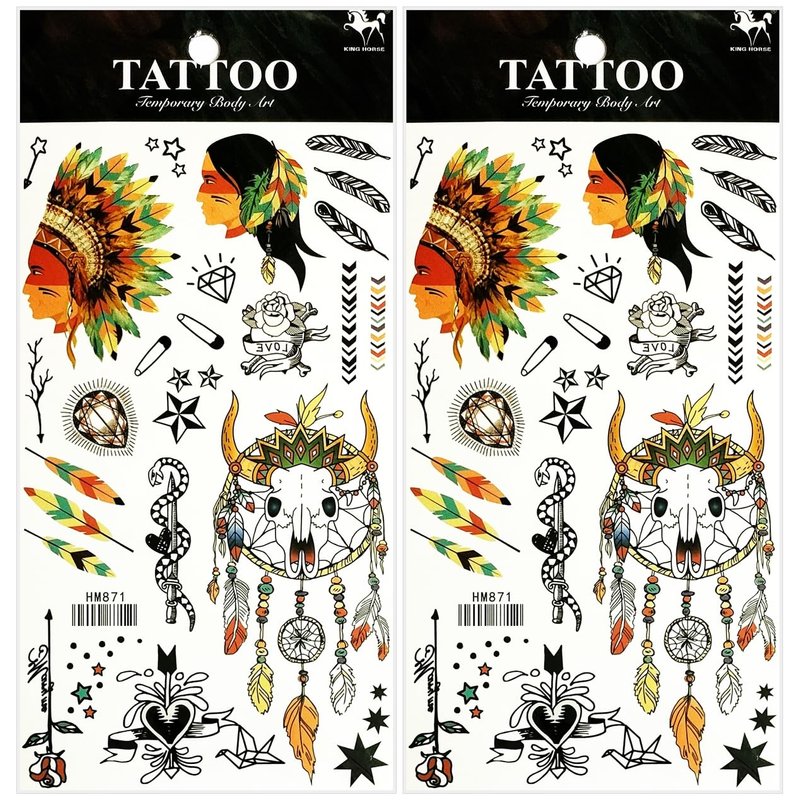 Indian Head Tribal Chief Waterproof Temporary Tattoos Fake Tattoo For Neck Arm Hands Leg Body Art Sticker Decal Festival Body Paint Adults Men and Women (Pack 2 PCS.)