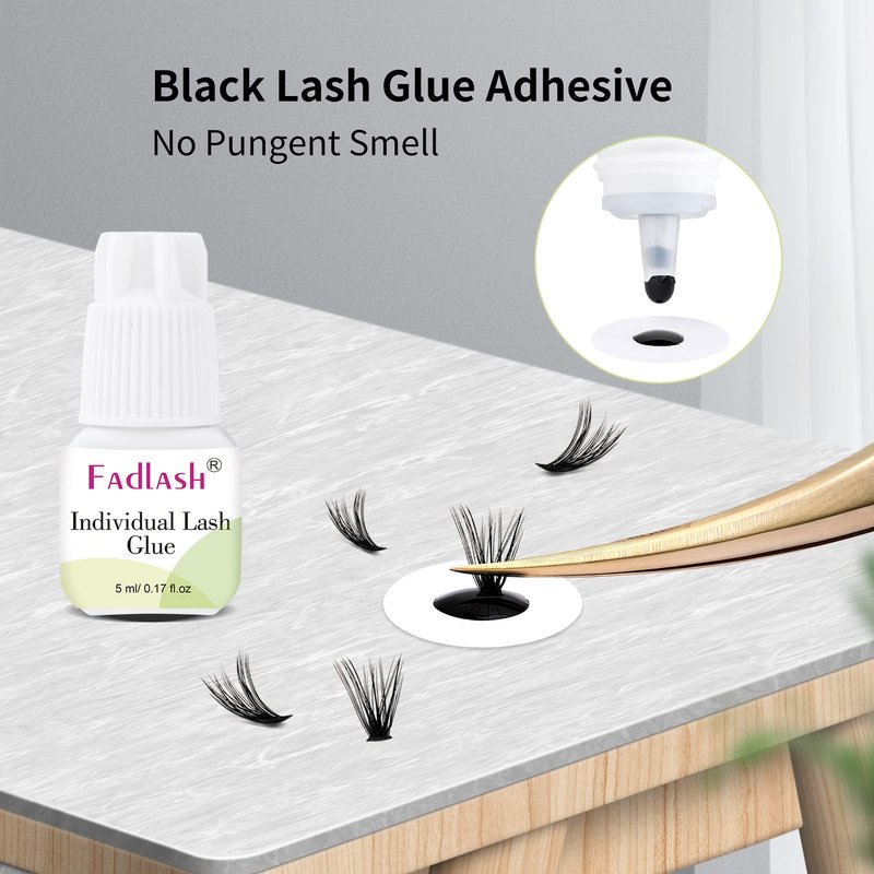 Individual Lash Glue FADLASH Cluster Lash Glue 2-3S Dry Time 7-15 Days Retention DIY Lash Extension Glue Self Application Sensitive Lash Cluster Glue Black 5ml (DIY/Cluster Lashes Use Only)