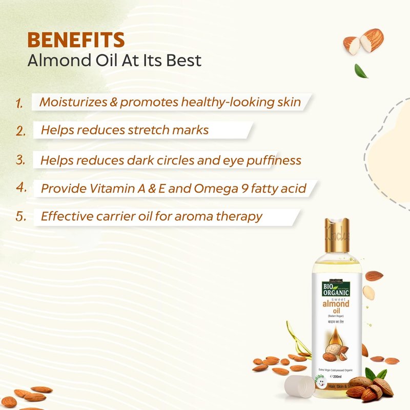 Indus Valley Remedies Pure, Natural ColdPressed Sweet Almond Oil for Hair & Skin (No Mineral Oil & Sulphate) 200ml