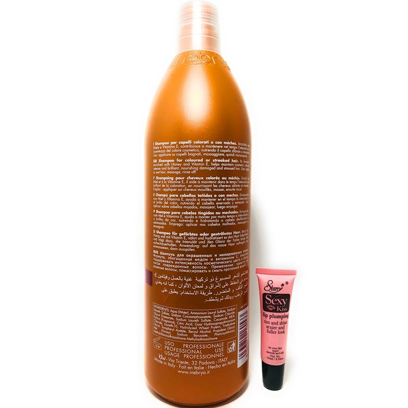 Inebrya Ice Cream Color Shampoo Creme Caramel 33.8 Oz and Ice Cream Color Mask Tutti Frutti 33.8 Oz * Free Starry Lip Plumping Gloss 10ml