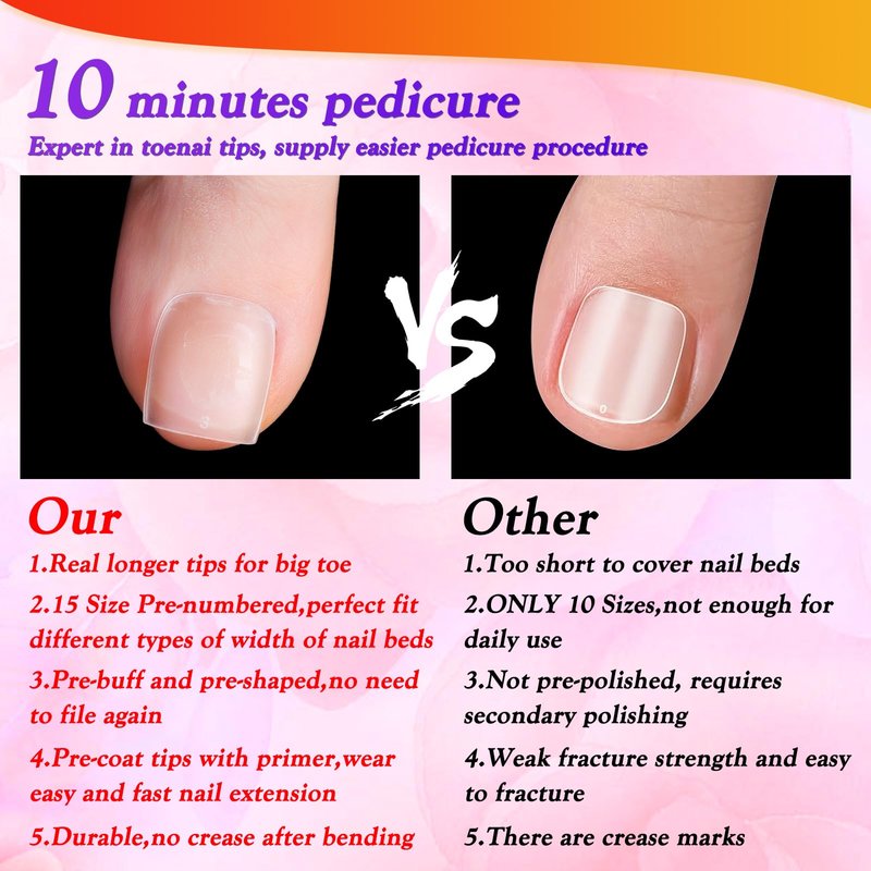 - REAL GAME-CHANGER: Summer is the perfect time to show off your pretty toenails! But for those of us with ingrown or damaged toenails, it can be daunting to wear sandals or open-toe shoes. That's where our toenail gel tips come in - they're a real game-changer! You'll no longer have to feel self-conscious about your feet. Plus, these tips look completely natural and blend in seamlessly with your own nails. So go ahead and step out confidently this Summer!