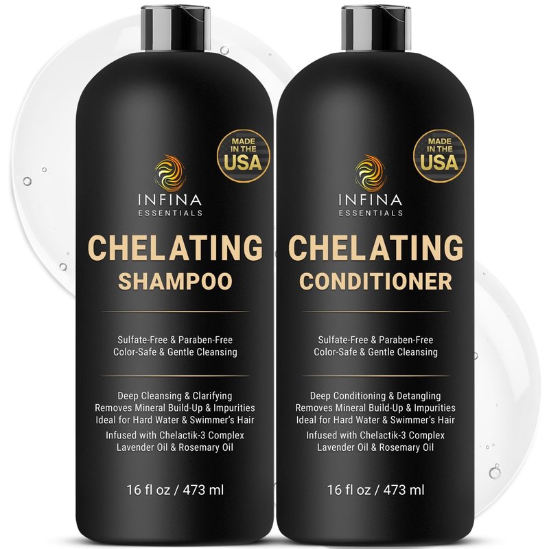 INFINA ESSENTIALS Chelating Hard Water Shampoo and Conditioner Set with Chelactik-3 & Rosemary Oil - Color Safe Metal Detox Shampoo and Conditioner for Mineral Build-Up & Swimmers Hair - 16 fl oz each