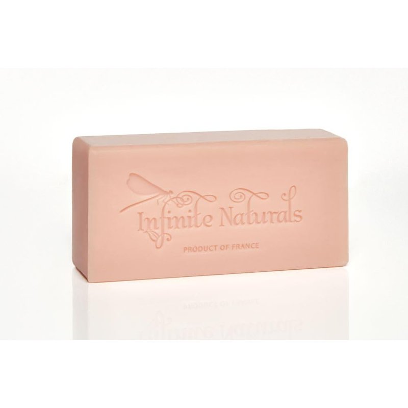 - Infinite Naturals gentle body soap contains nourishing shea extract to help cleanse and moisturize your skin. Sweet and Refreshing. Apply evenly over your skin, lather and enjoy the delightful enticing scent. 5.3 oz / 150g Made in France