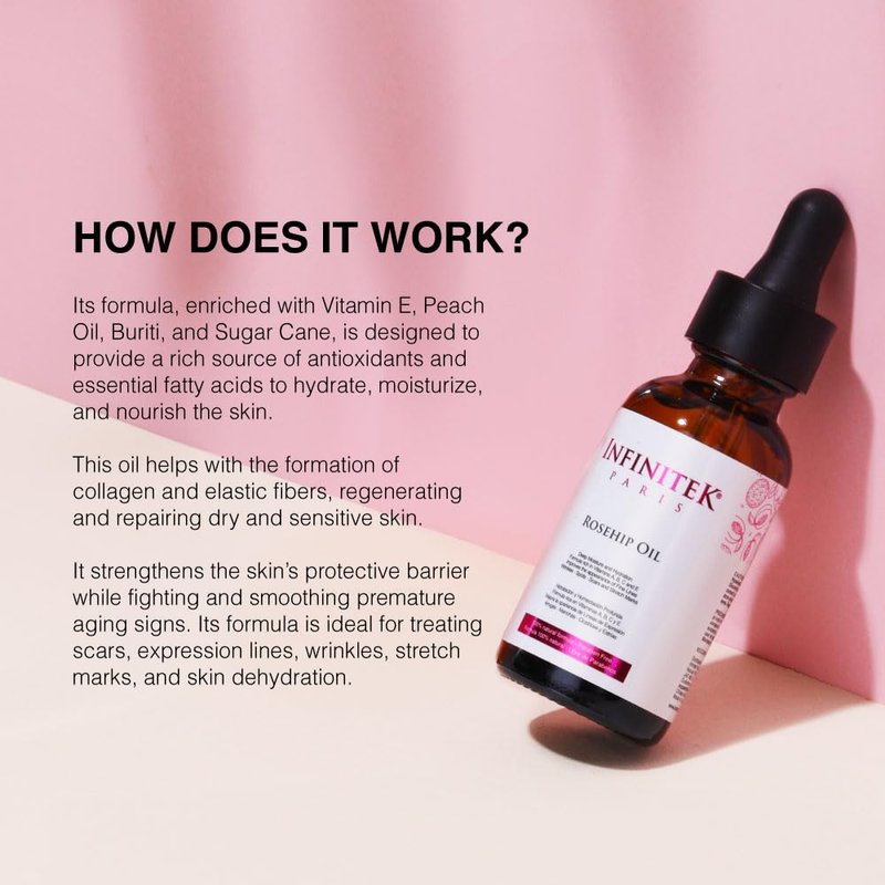 Infinitek Paris Rosehip Oil 1 Fl Oz. Hydrating and Repairing Face Oil with Vitamin E, Rose Oil for Face - Natural Face Moisturizer