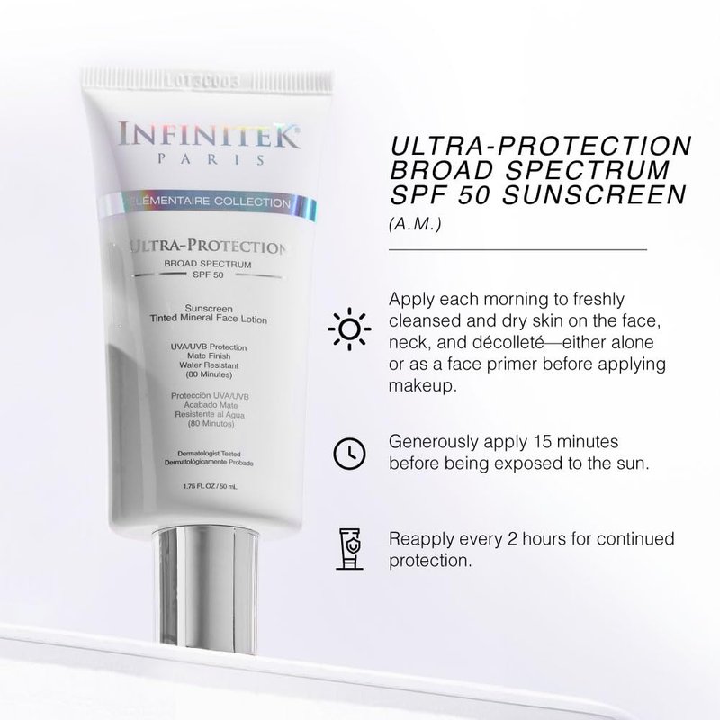 - TRUSTED SKIN CARE BY INFINITEK PARIS: Crafted with care, our sunscreen is part of the Infinitek Paris dermatologique face collection, ensuring high quality and effectiveness in every application. Protect your skin with confidence.