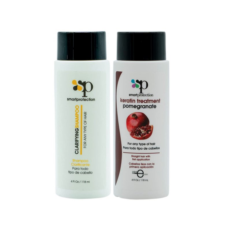 Keratin Hair Treatment infused with hydrolyzed keratin & collagen Amino acids for stronger healthier shiny hair. Eliminates frizz and curl, promotes healing of hair, blocks the effects of humidity. Great for all hair types Smart Protection Brazilian Keratin Treatment will leave your hair elastic, flexible, and soft, with a naturally vibrant shine. Keratin is a very strong protein that is a natural component of your hair, skin, nails and teeth. Clarifying shampoo is formulated to deep-cleans the hair cuticle and removes all residues and impurities that cling to the hair shaft. WARNING: APPLY ONLY IN A WELL-VENTILATED AREA. GLOVES AND FACEMASKS ARE RECOMMENDED DURING APPLICATION. FOR EXTERNAL USE ONLY. AVOID CONTACT WITH EYES AND DO NOT INGEST. IF PRODUCT GETS INTO YOUR EYES, FLUSH IMMEDIATELY WITH PLENTY OF WATER AND SEEK MEDICAL ASSISTANCE. KEEP OUT OF THE REACH OF CHILDREN. WOMEN WHO ARE PREGNANT OR BREAST-FEEDING SHOULD AVOID CONTACT WITH THE PRODUCT.