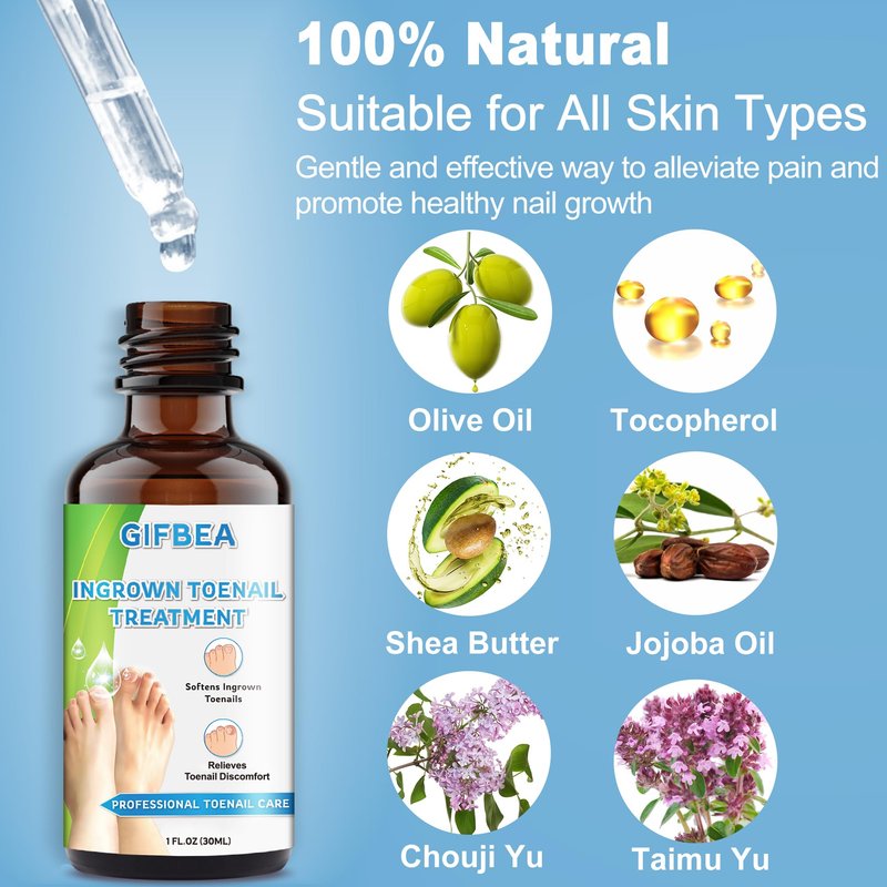 - Ingrown Toenail Drops for All Genders: Our natural ingrown toenail drops would relieve ingrown uncomfort but does not cause further irritation.It also helps soften and lighten your ingrown nails,make it easy to trim the ingrown toenails for relief. Used 3-4 times a week, in 2 to 4 weeks, the visible effect will appear.It uses natural ingredients for people of all ages men and women.Say goodbye to ingrown toenail concerns with GIFBEA Ingrown Toenail Treatment.
