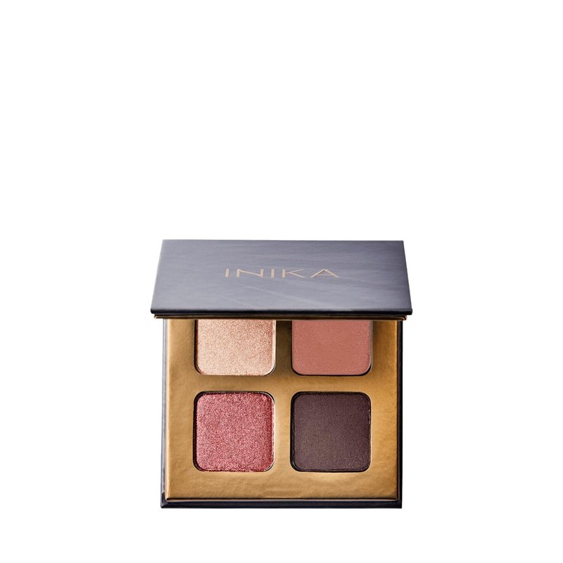 INIKA Organic Quad Eyeshadow Palette, Pure Mineral Shimmer Eyeshadow, Longwear, Highly Pigmented, Blendable with Vegan Cocoa Seed Extract and Organic Carnauba Wax, Cruelty-Free Makeup (Flowers)