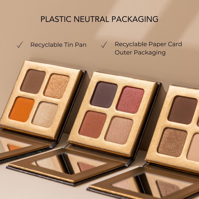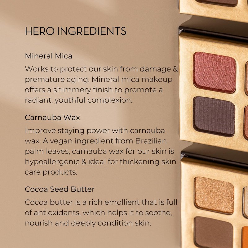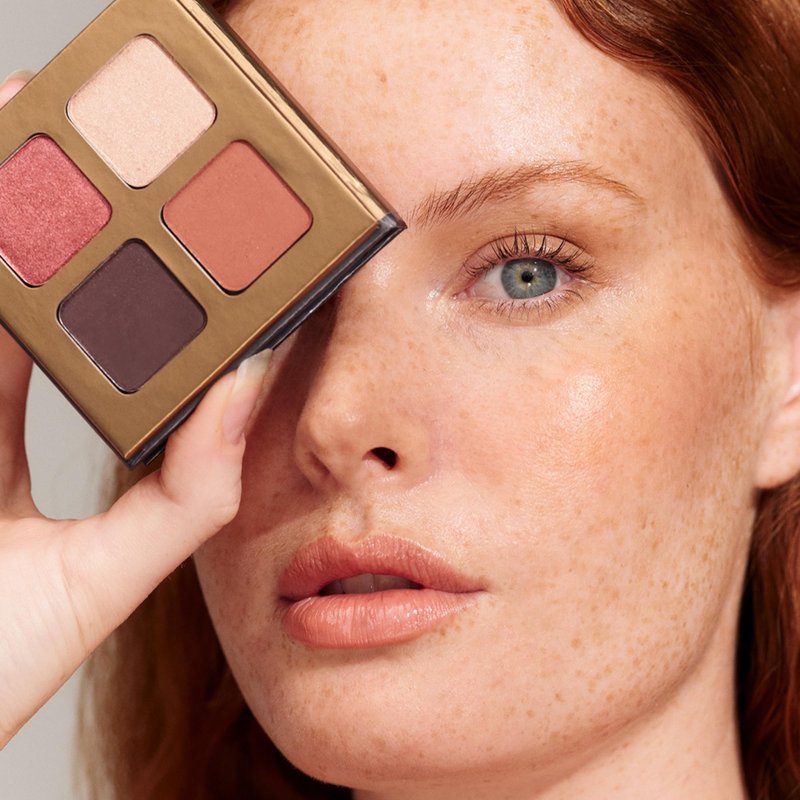 Enchanting like a flower in bloom, this feminine combination of rose and pink powders plus shades for contour and dimension easily takes you from day to night. Offering the best of both worlds, this Eyeshadow Quad combines the rich colour of pure mineral pigments with the mess-free application of a pressed powder. Housed in luxe packaging made sustainably with paper, the iconic fine and highly pigmented mineral eyeshadows are free from synthetic pressing agents. The compact's kind-to-skin formula is enriched with softening and nourishing Cocoa Seed extract, as well as hypoallergenic Carnauba Wax that creates a long-lasting finish while illuminating Mineral Mica imparts ethereal radiance. Eyeshadow Quad in Flowers lets you create a variety of subtle and bold eyeshadow blends with a super blendable mix: a dark matte shade, two satin transition colours and a shimmering highlight. Shimmering palette of pinks with neutral undertones.