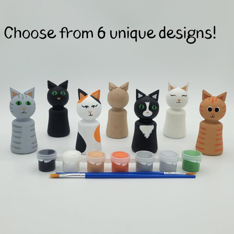 Ink and Trinket Kids DIY Cat Peg Doll Painting Kit, Craft Kit Includes 4 Peg Doll Animals with 6 Unique Cat Designs to Choose From, Gift for Cat Lovers, Boys, and Girls