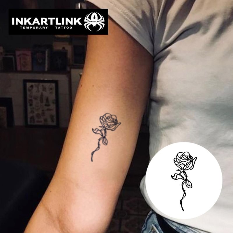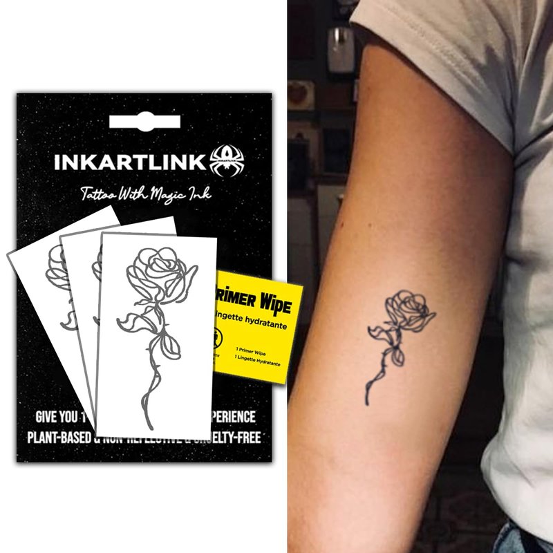 INKARTLINK Semi Permanent Tattoos, 3 Sheets of Small Temporary Tattoos, Adult Art Designs, Party Favors, Waterproof, Realistic, No Adhesive, No Reflective, Lasts 1-2 Weeks (Line Rose)