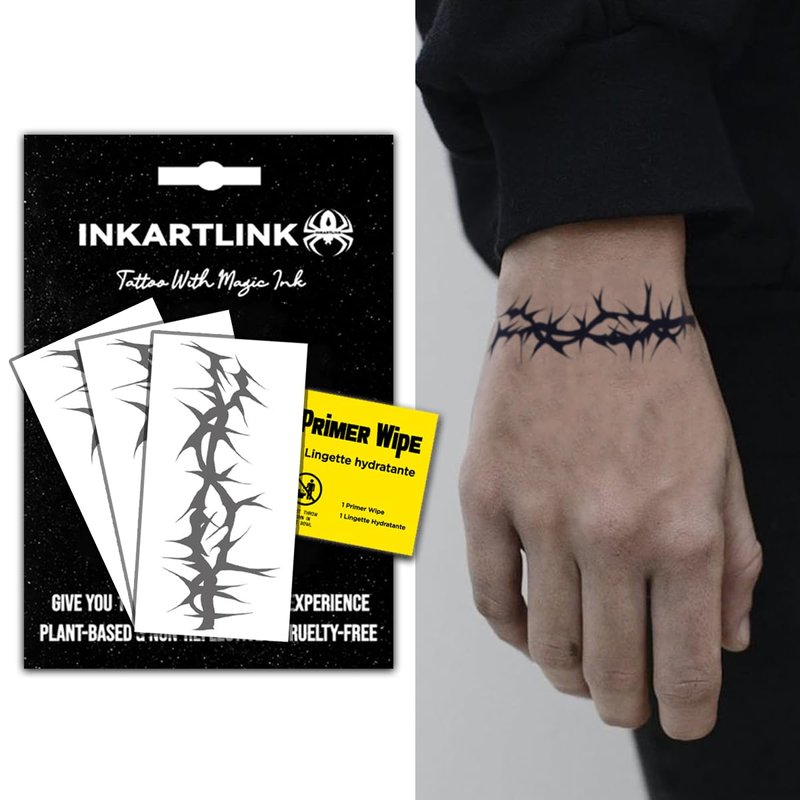 INKARTLINK Semi Permanent Tattoos, 3 Sheets of Small Temporary Tattoos, Adult Art Designs, Party Favors, Waterproof, Realistic, No Adhesive, No Reflective, Lasts 1-2 Weeks (Thorns)