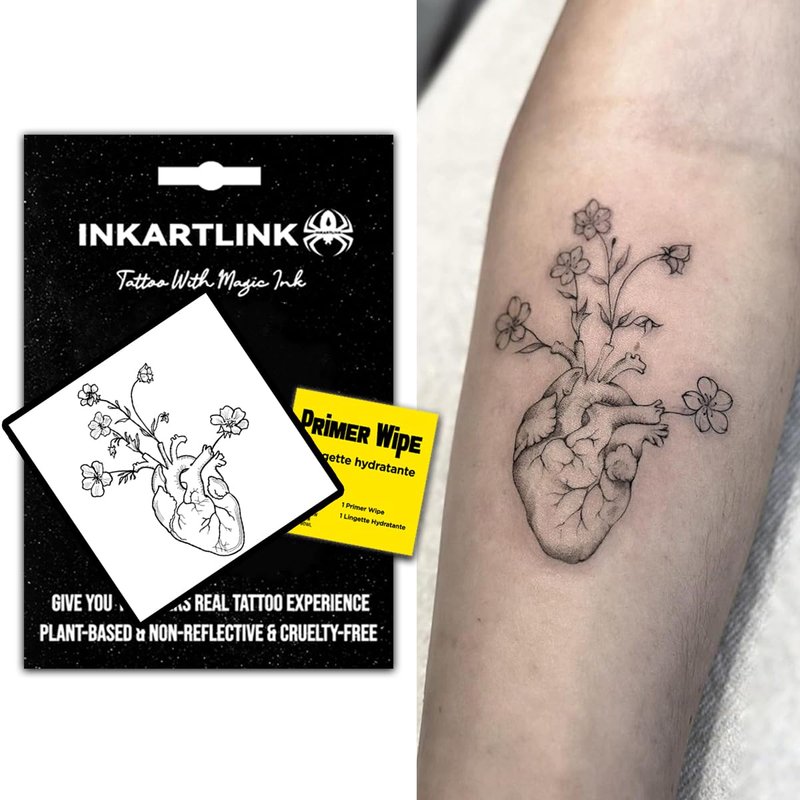 INKARTLINK Semi Permanent Tattoos, Tattoos for Women, Holiday Tattoos, Party Favors, Lasts 7-15 Days, Waterproof and Non-reflective, Unique Design (Heart-Shaped Flower)